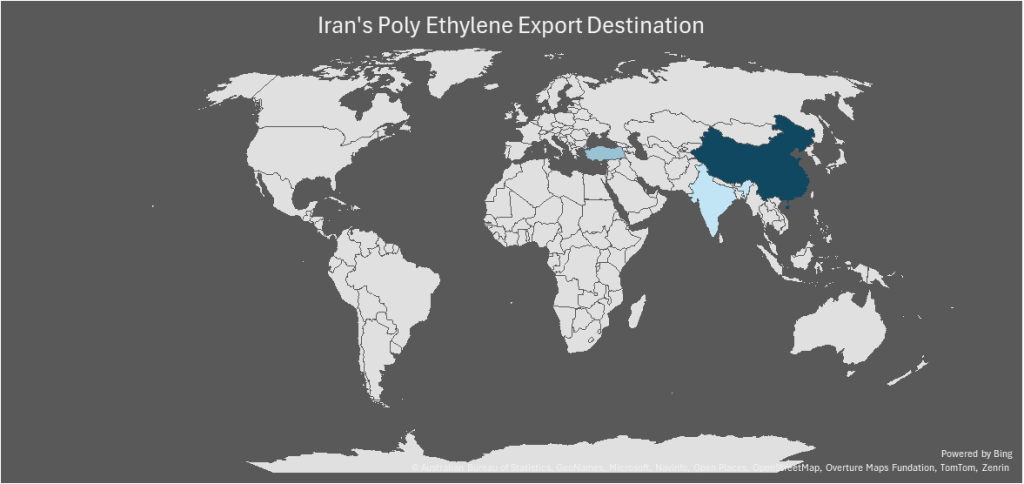Regionally, Iran is one of the leading suppliers of polyethylene to countries such as Turkey, Iraq, Afghanistan, and Central Asian nations. For example, Iran provides more than 10% of Turkey’s polyethylene imports by value, making it a key regional supplier. Iran’s competitive production costs and proximity to markets enable it to offer attractive pricing compared to global competitors.